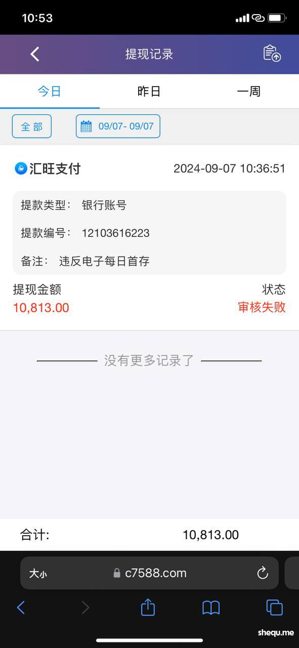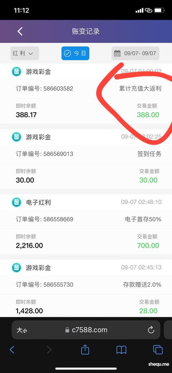 一个星期打了86万流水,前期给点小利,然后当猪杀,转转50转一下,连转50次中几十块钱,今天凌晨上了200U,客服给了百分之50反礼,要求打电子10倍流水,然后去打输没了,早上起来打开平台看见平台赠送388累计充值赠送奖励,这个钱是什么都可以去打的,我用388赠送去打百家乐赢了1万人民币,下分提款说我违规操作